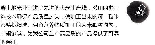 鐵等礦物質(zhì),無(wú)污染的環(huán)境,豐產(chǎn)的水稻資源,使鑫土地米業(yè)不斷發(fā)展壯大,成為綏化地區(qū)新崛起的一支精制大米生產(chǎn)的生力軍。
